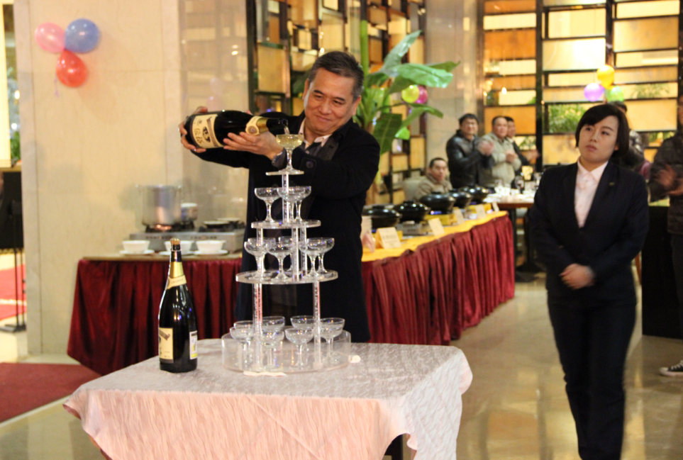 18點(diǎn)30分,年會(huì)正式開(kāi)始。首先,東科集團(tuán)總經(jīng)理張玉女士致詞,和大家一起分享了董事長(zhǎng)吳亮明先生高瞻遠(yuǎn)矚,獨(dú)具慧眼,創(chuàng)建東科集團(tuán)的歷程;總結(jié)了東科集團(tuán)2015年所取得的優(yōu)異成績(jī)。同時(shí),代表集團(tuán)對(duì)所有支持集團(tuán)發(fā)展的領(lǐng)導(dǎo)和嘉賓以及全體員工的辛勤付出表示衷心的感謝,祝福東科集團(tuán)在新的征程中不斷發(fā)展壯大,再創(chuàng)輝煌。隨后,東科集團(tuán)董事長(zhǎng)吳亮明先生開(kāi)香檳注入香檳塔,舉杯和現(xiàn)場(chǎng)所有嘉賓共慶年會(huì),相與祝福,祝福大家新年快樂(lè),身體健康,工作順利!祝福東科集團(tuán)興旺發(fā)達(dá)!明天更美好!