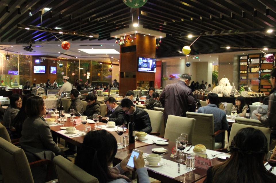 晚餐采用自助餐的形式,大家享受美食的同時(shí)互相敬酒,互相祝福,場(chǎng)面氣氛熱烈。中間還穿插大家期待已久的抽獎(jiǎng)環(huán)節(jié),中獎(jiǎng)的幸運(yùn)兒個(gè)個(gè)臉上洋溢著喜悅的笑容,不時(shí)歡呼高叫,把年會(huì)熱鬧的氣氛推向高潮。